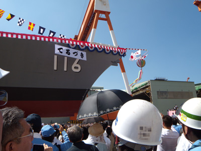 進水式は10時36分とかそのあたりから始まるらしいんだけど、
