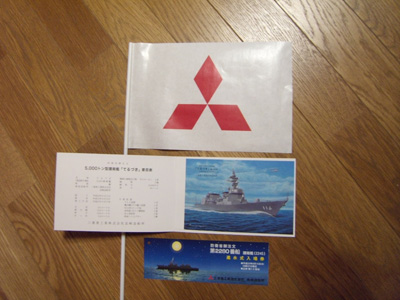そうそう、受付でよく冷えたお茶と護衛艦のポストカードと、旗をもらいましたよ。